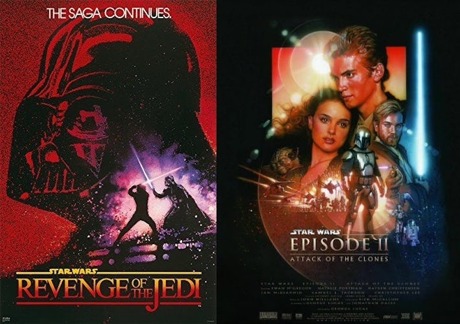 Отпечаток работы Дрю Стразана для *Return of the Jedi* доступен на Wayfair. MoviePosters.com продает наборы его постеров из трилогии приквелов.