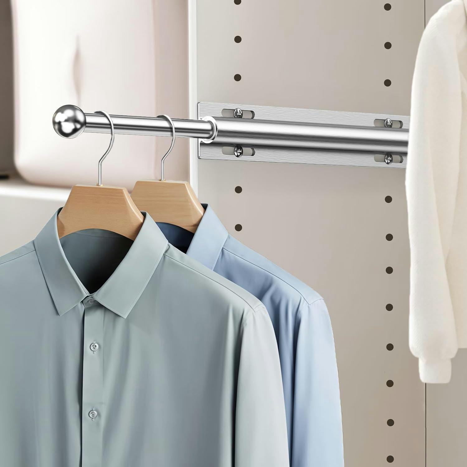 Этот выдвижной стержень для удобной организации шкафа.