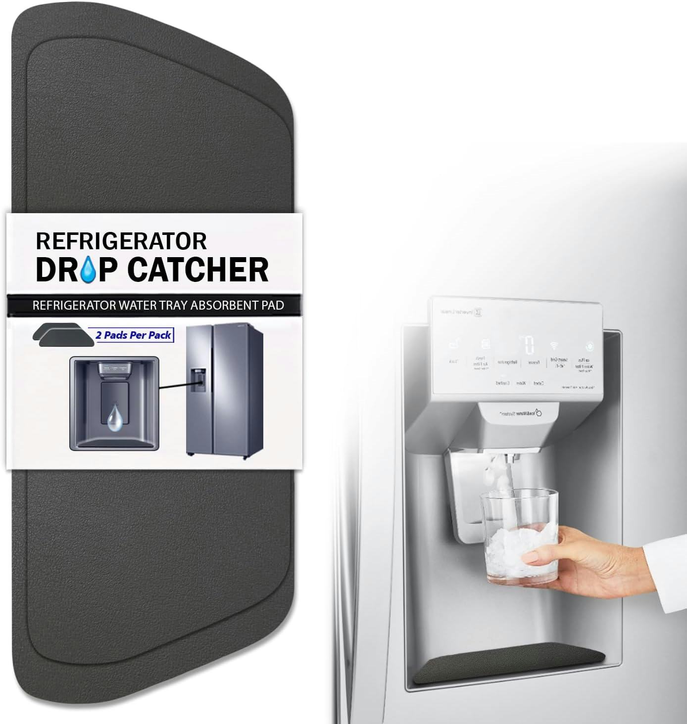 Вызывает ли диспенсер воды в вашем холодильнике появление луж? Этот впитывающий уловитель капель – решение! Он идеально подходит в поддон для воды и быстро впитывает пролитую жидкость – он может вместить до восьми раз больше своего веса! Кроме того, он высыхает всего за несколько секунд. Этот моющийся и многоразовый коврик предотвращает некрасивые водяные пятна и облегчает уборку. Он доступен в прямоугольной или полукруглой форме.