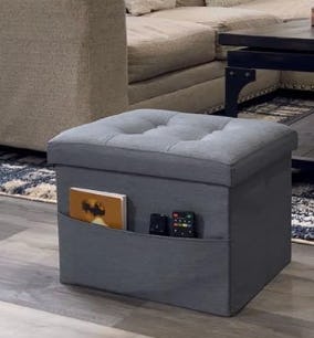 Этот складной пуф, который служит как для хранения & сидения.