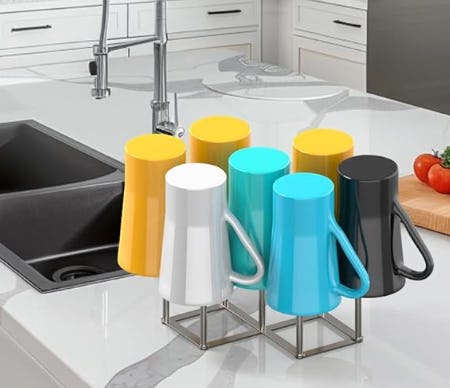 Эта складная сушилка для посуды, которая может вместить 7 чашек или бутылок одновременно.