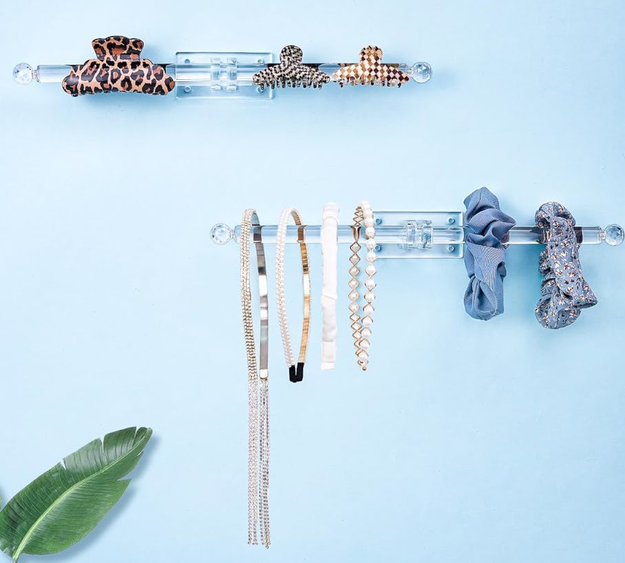 Попрощайтесь с запутанными аксессуарами с помощью этих прозрачных акриловых органайзеров! Каждая 13,8-дюймовая планка имеет стильные ручки в виде хрустальных шаров, которые предотвращают скольжение ожерелий, браслетов и повязок на голову. Вы можете легко прикрепить ее к стене с помощью прилагаемых самоклеящихся полосок или шурупов, превратив ваши украшения в красивый дисплей. Наконец, держите свои любимые повседневные вещи на виду и в порядке!