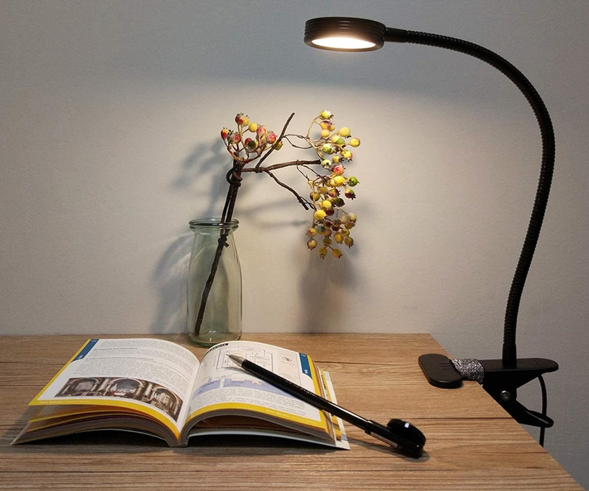 Этот клипсовый светильник обеспечивает адаптивное освещение для любой ситуации. Его гибкий гусак изгибается на все 360 градусов, а два переключателя на шнуре позволяют легко управлять как яркостью, так и цветовой температурой. Лампа включает в себя USB-адаптер для питания, а клипса оснащена нескользящей накладкой для защиты поверхности вашего стола от царапин при креплении.