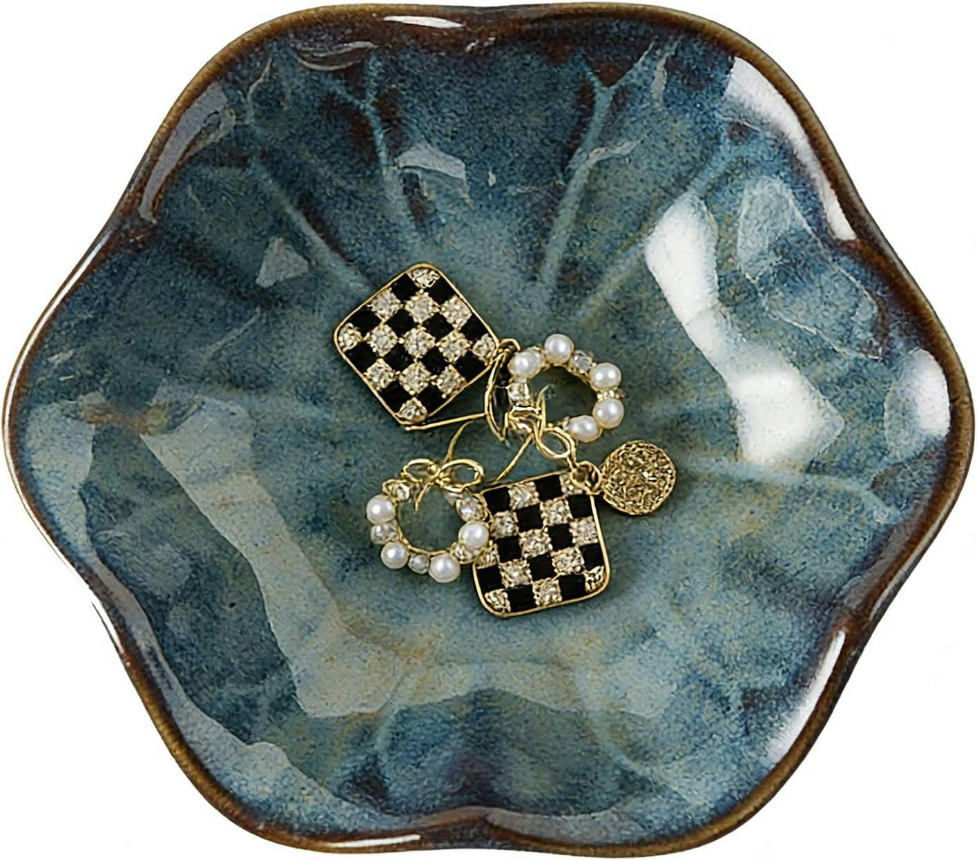 Эта небольшая тарелка изготовлена из блестящей, глазурованной керамики и имеет простой, привлекательный дизайн. Её ширина чуть больше 10 сантиметров – идеально подходит для хранения украшений, ключей или других мелочей. Вы можете поставить её на комод, прикроватную тумбочку, раковину в ванной или возле входной двери, и её легко чистить.