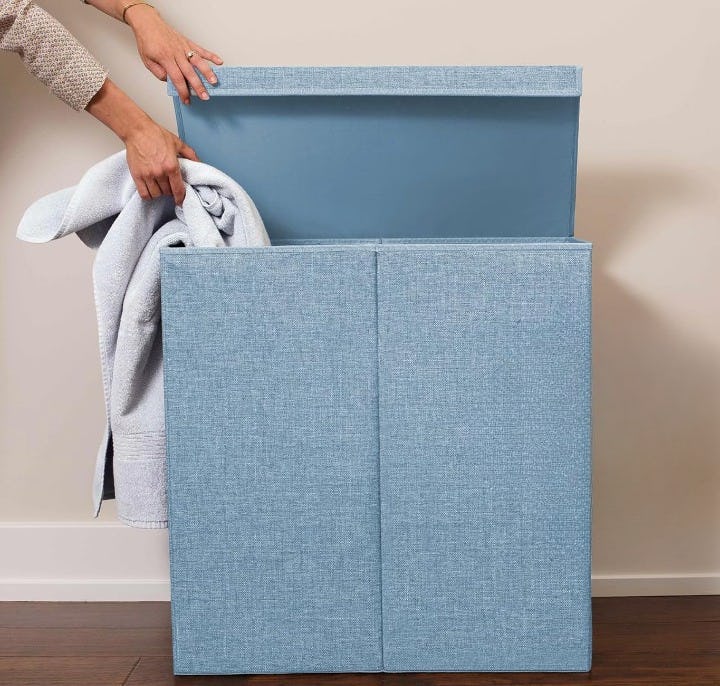 Сделайте день стирки проще с этой вместительной корзиной для белья! Она поставляется со съемными мешками, чтобы вы могли легко сортировать свою одежду. Крышка скрывает содержимое и помогает контролировать запахи, а она изготовлена из прочной и легкой ткани, которая может вместить до четырех загрузок белья. Ее легко собрать, перемещать, и она отлично смотрится в спальнях, ванных комнатах или шкафах.