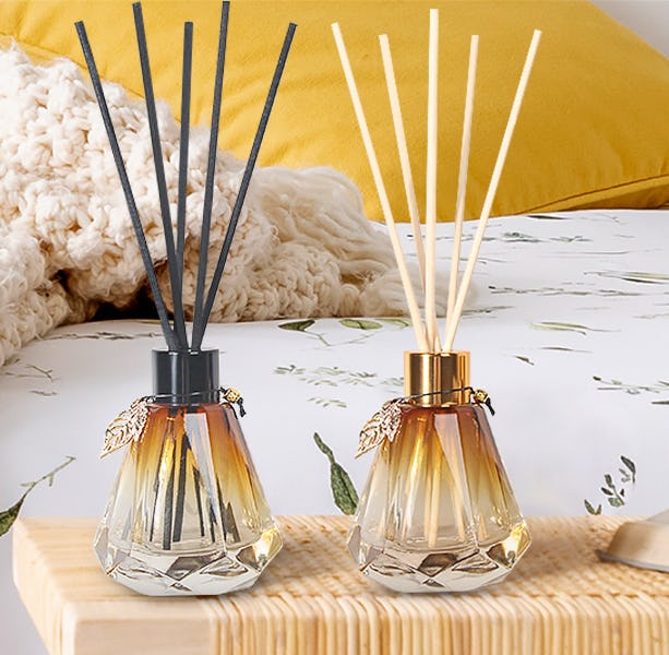 Набор диффузоров с прекрасными стеклянными бутылками.