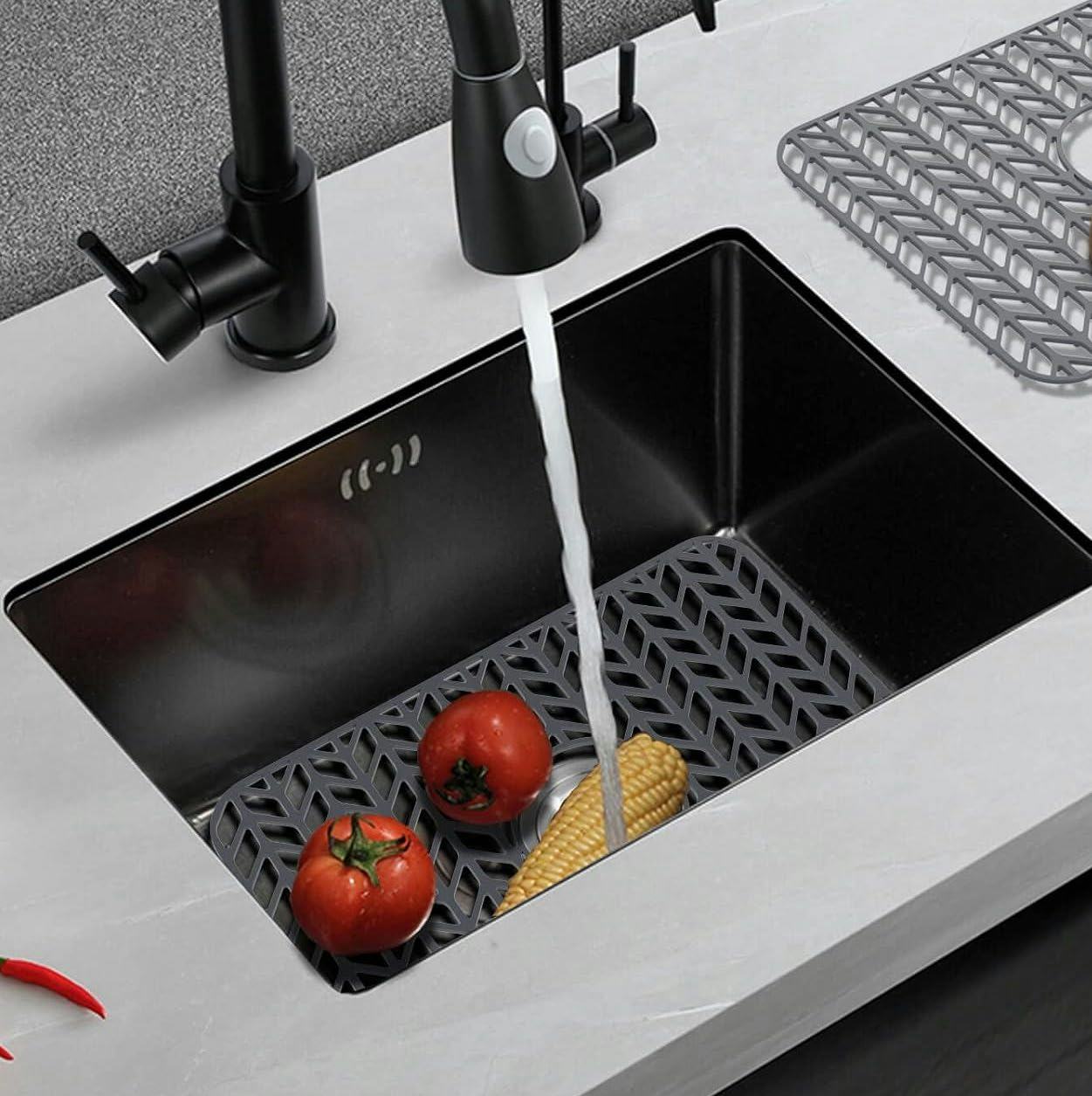 Гибкий силиконовый коврик для раковины, который амортизирует посуду и устойчив к высоким температурам.