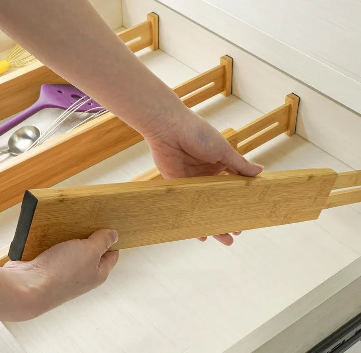 Разделители для ящиков из бамбука, которые регулируются за счет пружинного натяжения