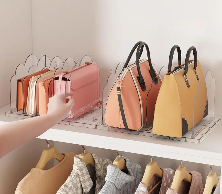 Устали от сумок, загромождающих пространство? Этот прозрачный акриловый органайзер быстро превращает хаос в аккуратную и стильную экспозицию. В каждый комплект входят две основы и восемь разделителей, которые легко защелкиваются на месте, позволяя настроить пространство под ваши сумки. Он сохраняет сумки в вертикальном положении, защищенными и в пределах досягаемости. Кроме того, он подходит не только для сумок – используйте его для организации книг, файлов или любых других вещей, которые вам нужно содержать в порядке.