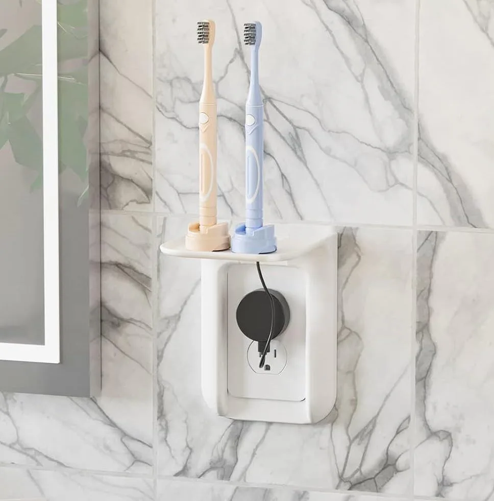 Этот удобный органайзер превращает стандартную розетку в небольшую зарядную станцию. Он изготовлен из прочного белого пластика и включает в себя небольшую полку, которая может выдержать до 10 фунтов. В задней части есть отверстие для ваших проводов, и даже есть слоты для зубных щеток, что делает его идеальным для ванных комнат. Но он полезен везде, где вам нужно дополнительное пространство — например, на кухнях или в спальнях — и где мало места на столешнице.