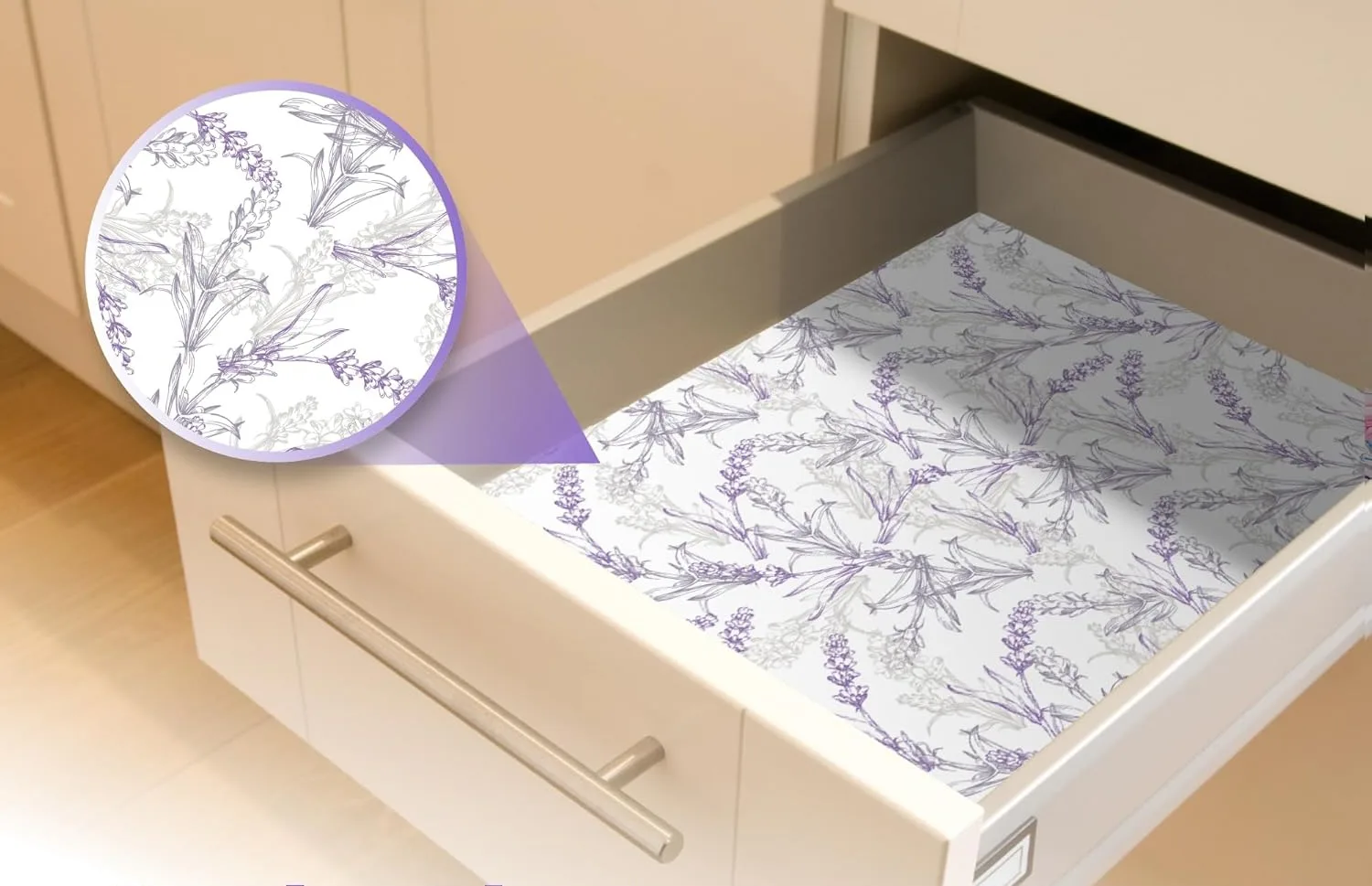 Красивые вкладыши для ящиков, мягко ароматизированные лавандой.