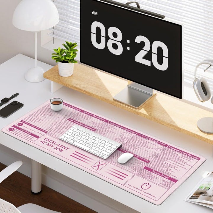 Большой коврик для мыши, который также служит шпаргалкой по Excel.