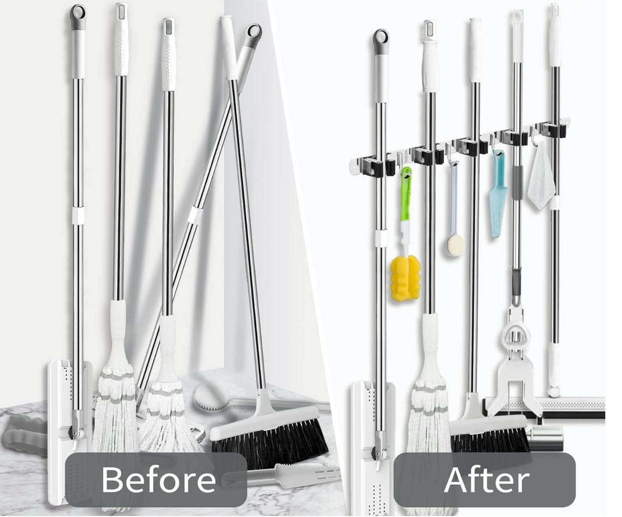 Содержите свой подвал или гараж в порядке и освободите место на полу с помощью этого держателя для инструментов! Он вмещает до девяти метел или швабр, а благодаря сочетанию крючков и зажимов может надежно хранить инструменты даже без петель для подвешивания. У вас будет больше места для передвижения, как только все будет организовано.