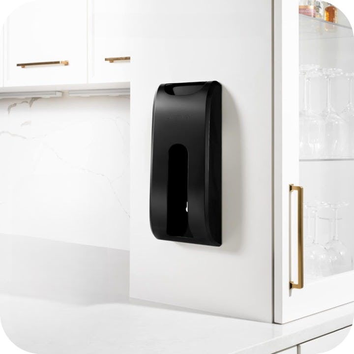 Устали от грязных и переполненных ящиков для мусорных пакетов? Этот удобный держатель аккуратно вмещает ваши пакеты. Просто загрузите их сверху и легко извлекайте сбоку после установки на стену или внутри шкафа. Доступен в шести цветах, может быть установлен как с помощью шурупов, так и с помощью клея.