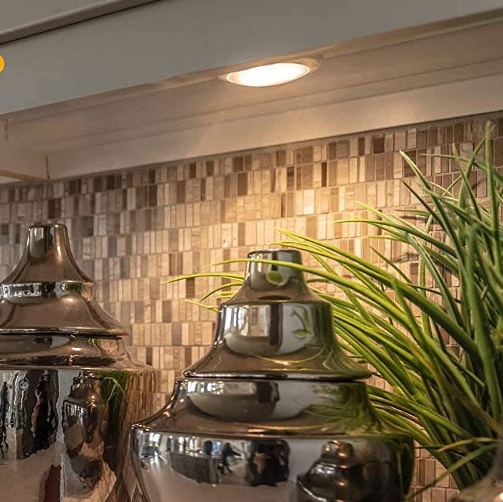 Этот набор из шести светодиодных светильников включает в себя все необходимые батарейки для мгновенной установки под вашими шкафами. Они активируются прикосновением и поставляются с пультом дистанционного управления для регулировки яркости, установки таймеров и включения или выключения.