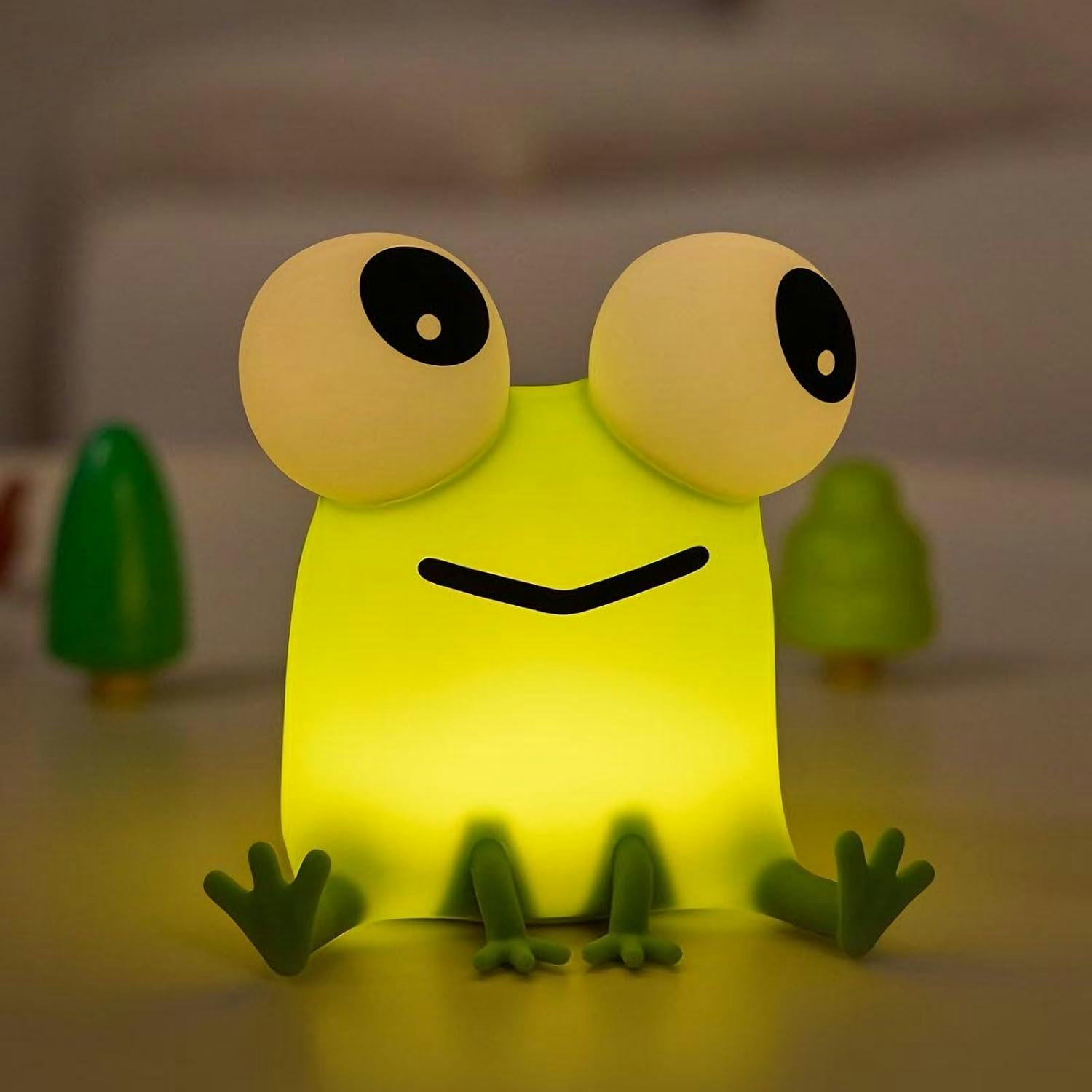 Начать разбиратьсяМягкая лягушка-светильник с большими, выпуклыми глазами.
