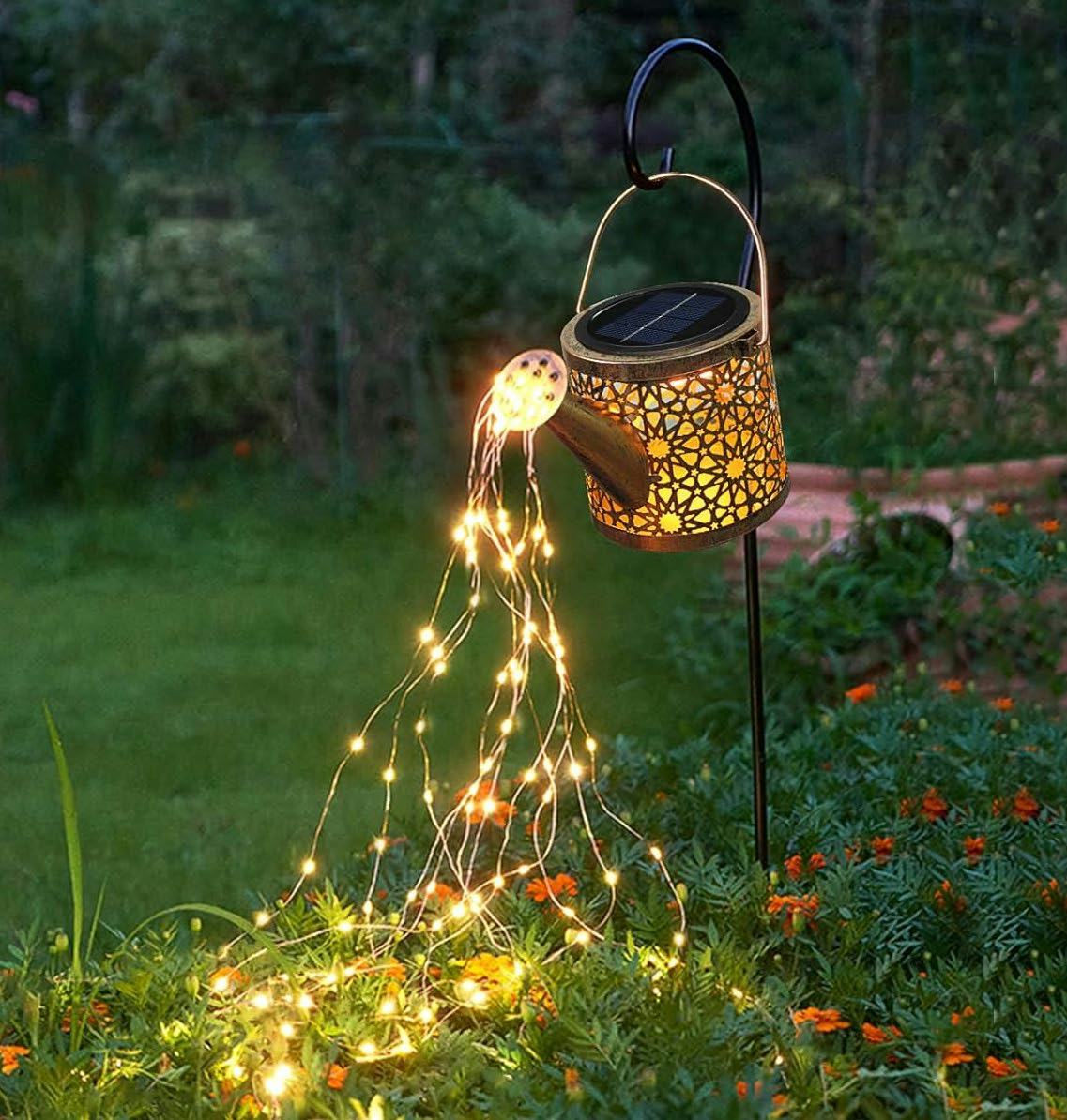 Этот очаровательный солнечный фонарь выглядит как лейка и добавляет волшебное свечение садам и патио. Шестьдесят крошечных светодиодных лампочек высыпают из носика, создавая красивый, мерцающий эффект, напоминающий звездный дождь. Он питается от солнца, поэтому не нужны провода или батарейки – он автоматически загорается ночью!