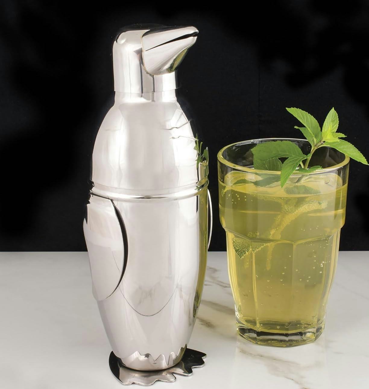 Будьте готовы наслаждаться счастливым часом еще больше с этим восхитительным коктейльным шейкером в виде пингвина! Изготовленный из прочной нержавеющей стали, он отличается очаровательными деталями, такими как лапки, клюв, крылья и милый тисненый галстук-бабочка. Его дизайн в стиле ар-деко добавляет нотку элегантности любой домашней барной стойке.