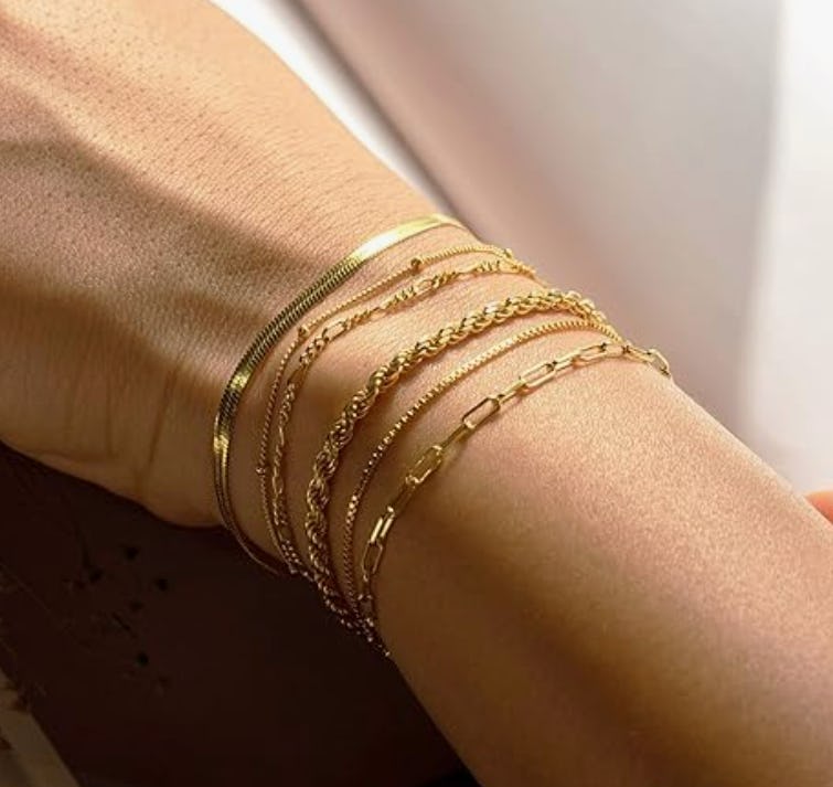 Получите гламурный образ за меньшую цену с этим золотым браслетом! Менее чем за 20 долларов вы получите набор из шести цепочек с 14-каратным золотым покрытием, безопасных для чувствительной кожи.