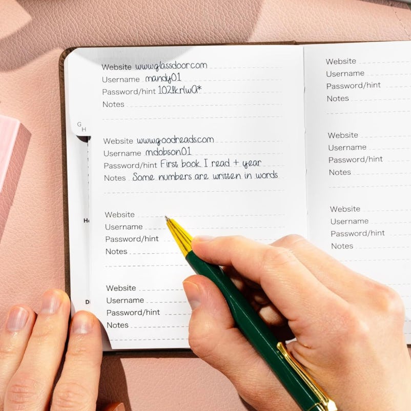 Удобная книга для паролей с бумагой, не просвечивающей чернила.