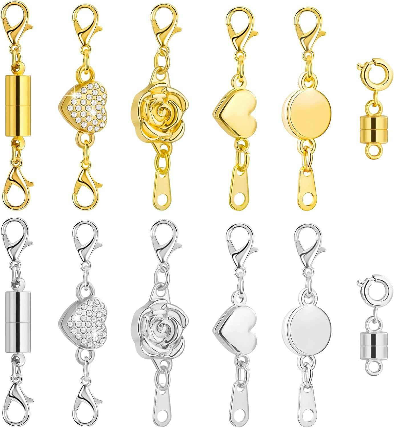 Эти магнитные застежки значительно облегчают надевание и снятие ваших ожерелий. В комплект входит 12 застежек – 6 золотистого цвета и 6 серебристого цвета – чтобы вы могли подобрать подходящую для любого ожерелья. Они также очень легкие и удобные в носке.
