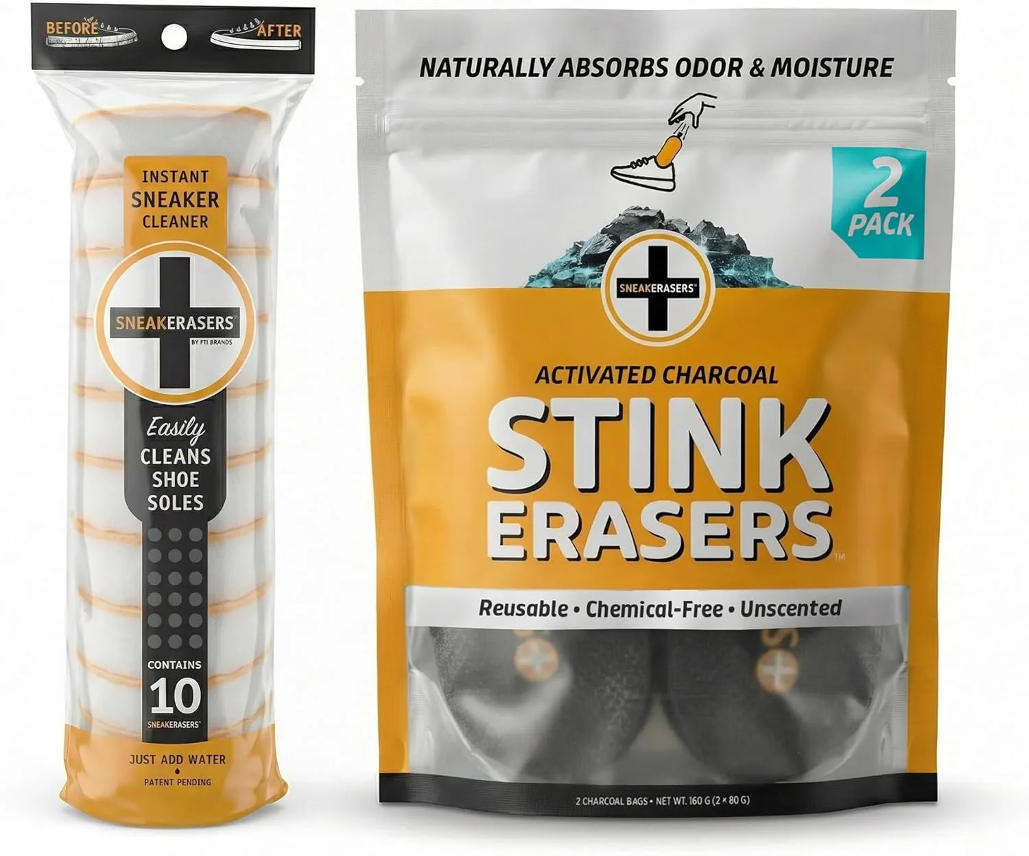 Прежде чем избавиться от вонючей обуви, попробуйте этот набор для чистки, чтобы освежить её! Дезодоранты используют активированный уголь, чтобы впитывать запахи и влагу – просто поместите их внутрь обуви на несколько часов, чтобы устранить запах. Кроме того, абразивные губки идеально подходят для удаления грязи и потертостей.