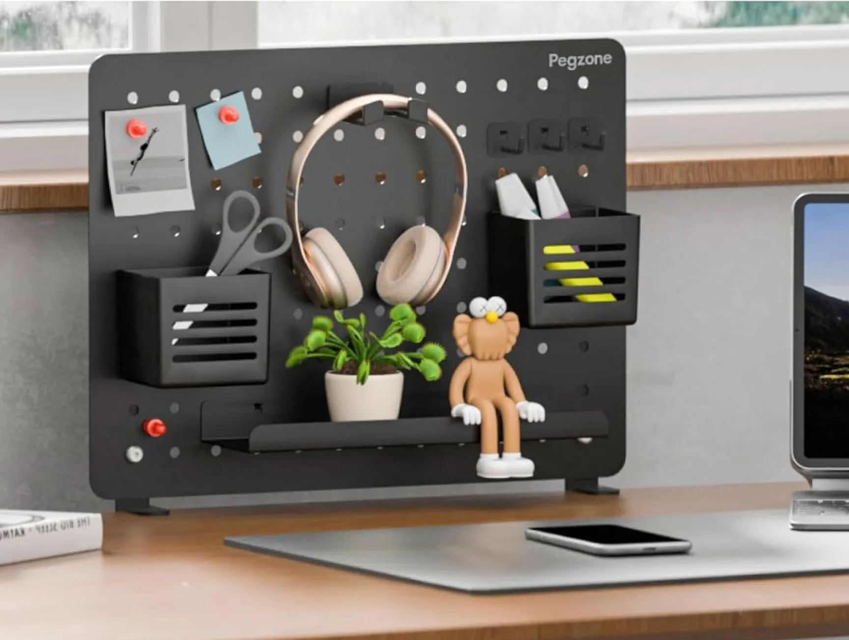 Начать разбиратьсяКрепящаяся на край пегборд-панель, добавляющая аккуратное хранение на столы.