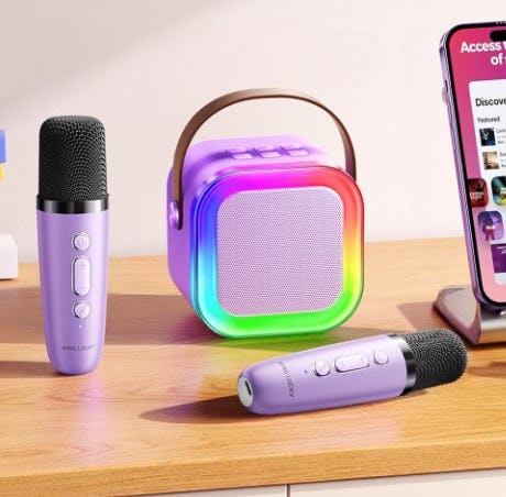 Эта мини-караоке-система с 2 беспроводными микрофонами