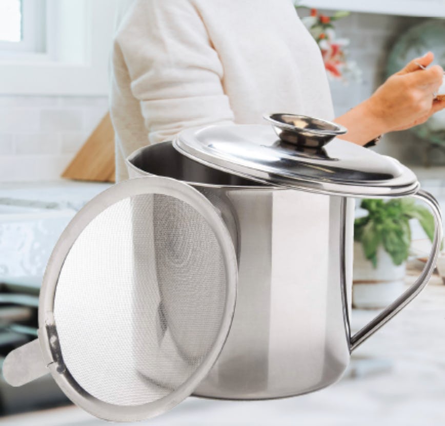 Не выбрасывайте этот жир от бекона! Этот контейнер идеально подходит для его хранения. Жир от бекона добавляет невероятный вкус другим блюдам, а этот контейнер упрощает его хранение. В нем даже есть встроенный фильтр для удаления кусочков и поддержания порядка. Кроме того, носик облегчает наливание, а благодаря прочной конструкции из нержавеющей стали уборка становится очень простой.
