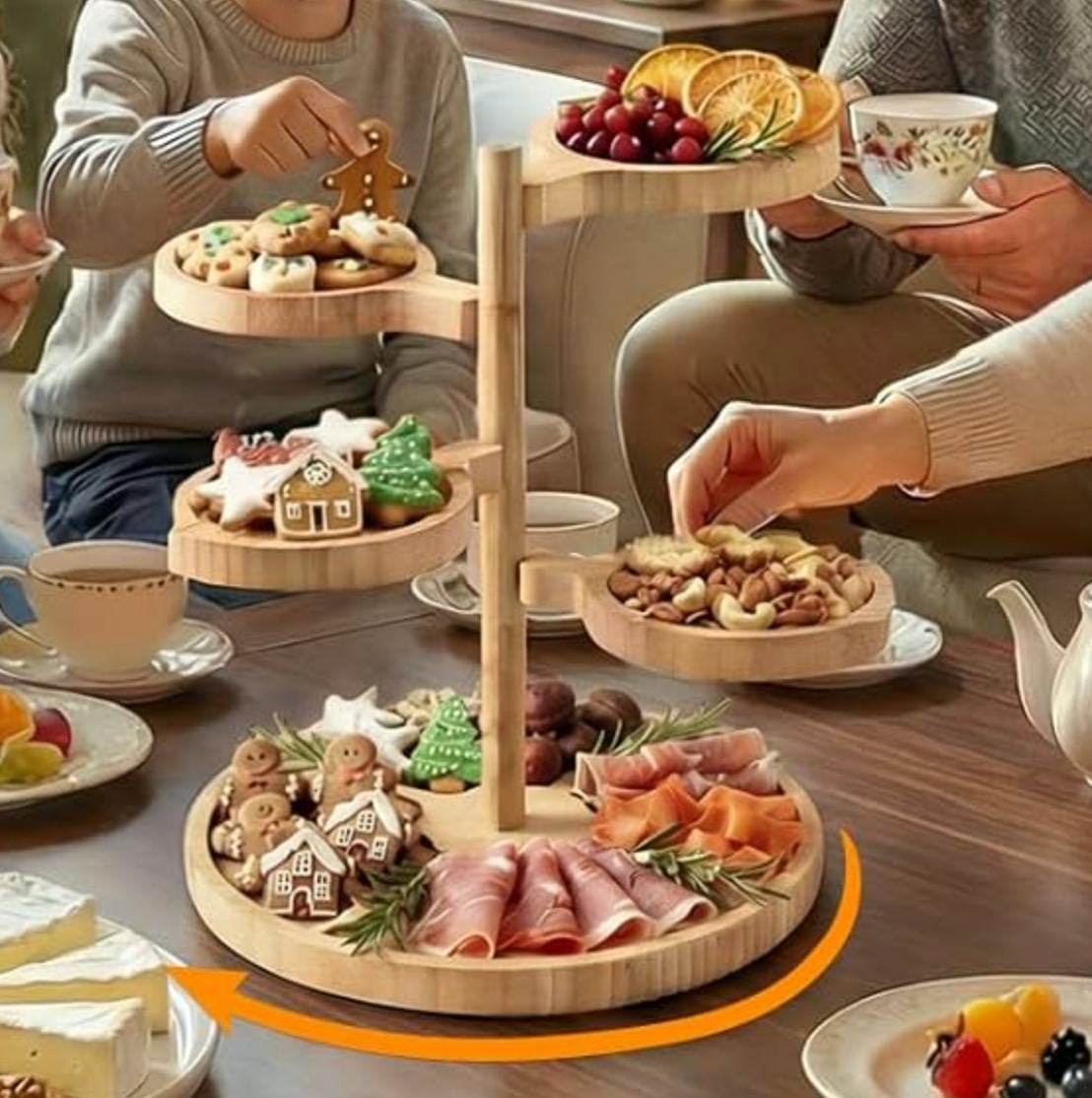 Эта бамбуковая тарелка для закусок идеально подходит для приёма гостей! Благодаря пяти уровням у вас будет достаточно места для размещения мяса, сыров, овощей и других вкусных угощений. Верхние четыре яруса даже вращаются, что облегчает доступ ко всему для ваших гостей.