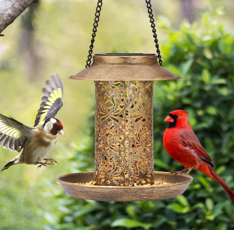 Декоративная кормушка для птиц, которая также служит солнечным фонарём.