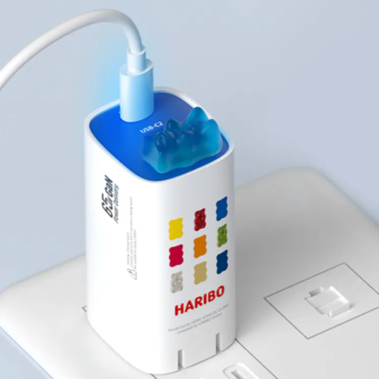 Этот восхитительный зарядный блок в виде мишки-желейки – это не просто милый декор – он действительно практичен! Он позволяет заряжать до трёх устройств одновременно благодаря двум портам USB-C и одному USB-A. Кроме того, его мощность в 65 ватт достаточно сильна, чтобы справиться с телефонами, планшетами и даже ноутбуками. Складная вилка делает его очень удобным для путешествий.