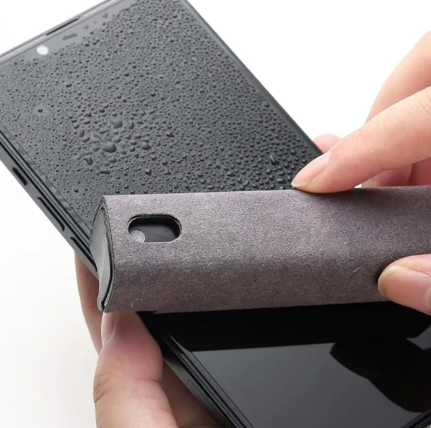 Салфетка из микрофибры для экрана со встроенным чистящим спреем.