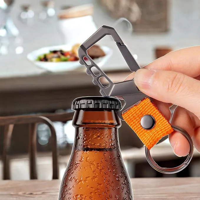 Прочный карабин для ключей со встроенной открывалкой для бутылок.