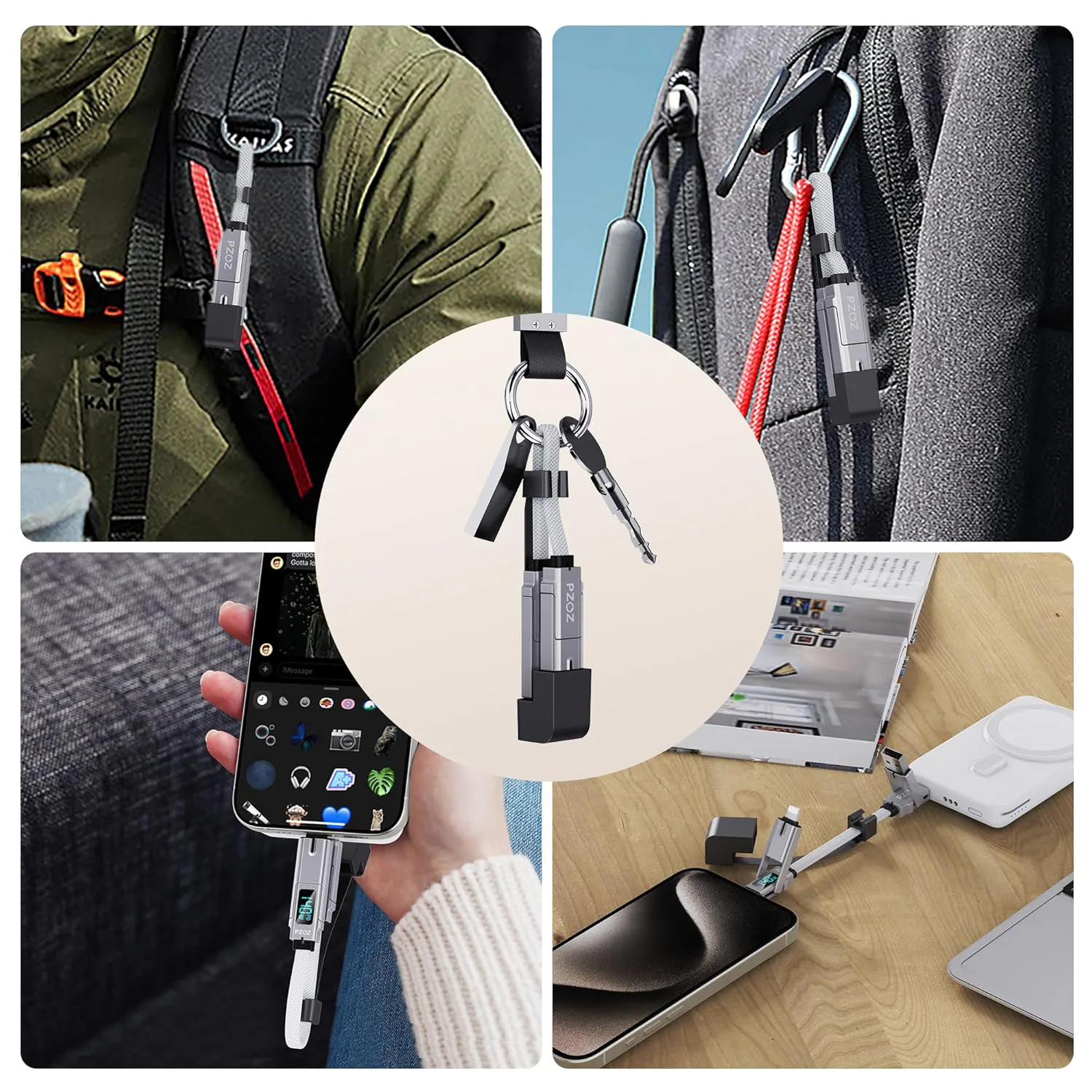 Этот брелок-зарядное устройство облегчает жизнь, позволяя отказаться от множества кабелей. Его компактный дизайн «четыре-в-одном» включает разъемы как для устройств USB-C, так и Lightning, а также разъемы USB-C и USB-A – это означает, что он совместим с широким спектром электроники, не добавляя объема. Кроме того, он оснащен LED-дисплеем для отображения скорости зарядки, поддерживает быструю зарядку и также может передавать данные.