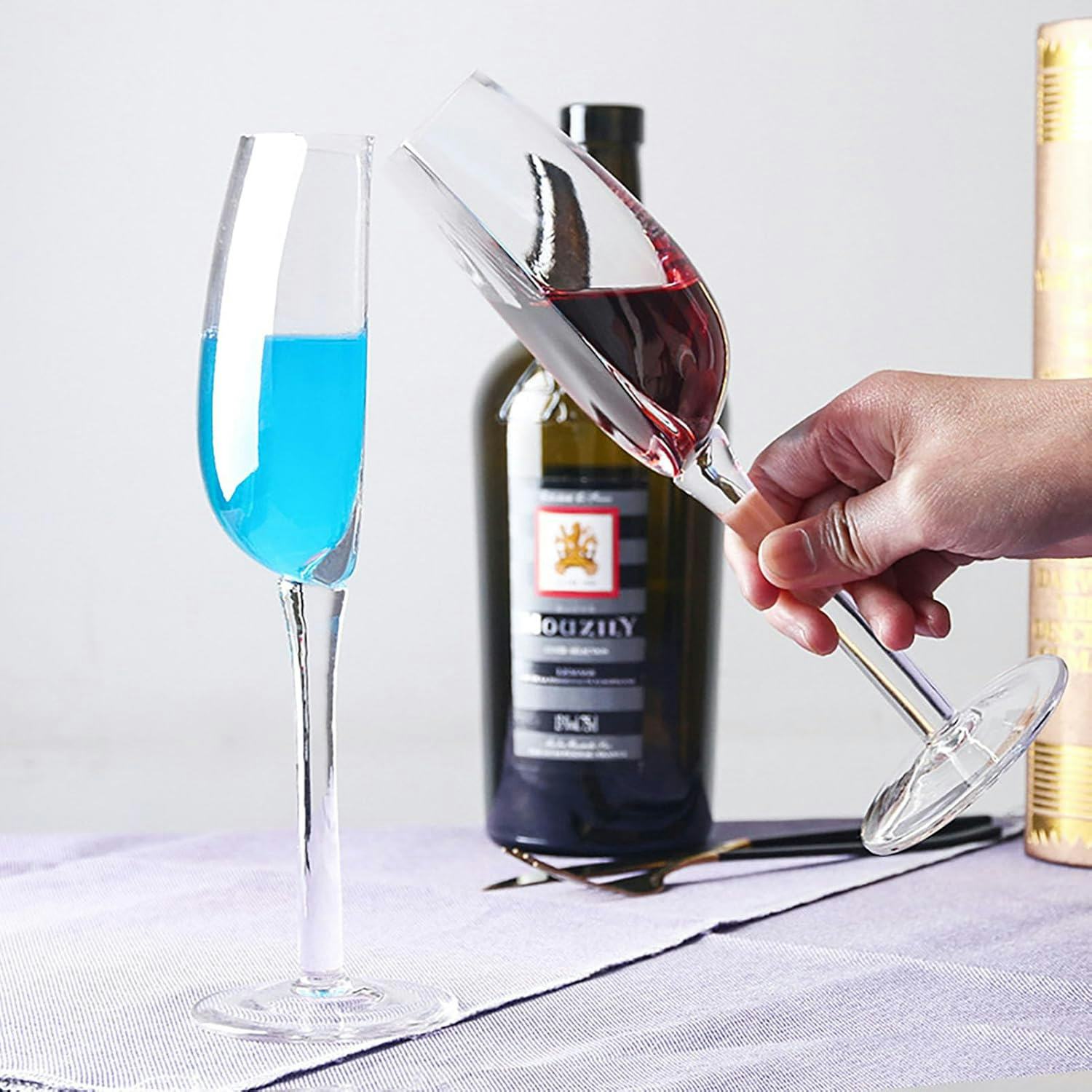 Этот уникальный набор винных бокалов игриво переосмысливает классический вопрос «наполовину пустой или наполовину полный». Он включает в себя два отдельных предмета, каждый из которых имеет форму половины винного бокала. Хотя они и не предназначены для ежедневного использования, они станут забавным и началом для разговоров дополнением, когда у вас гости.