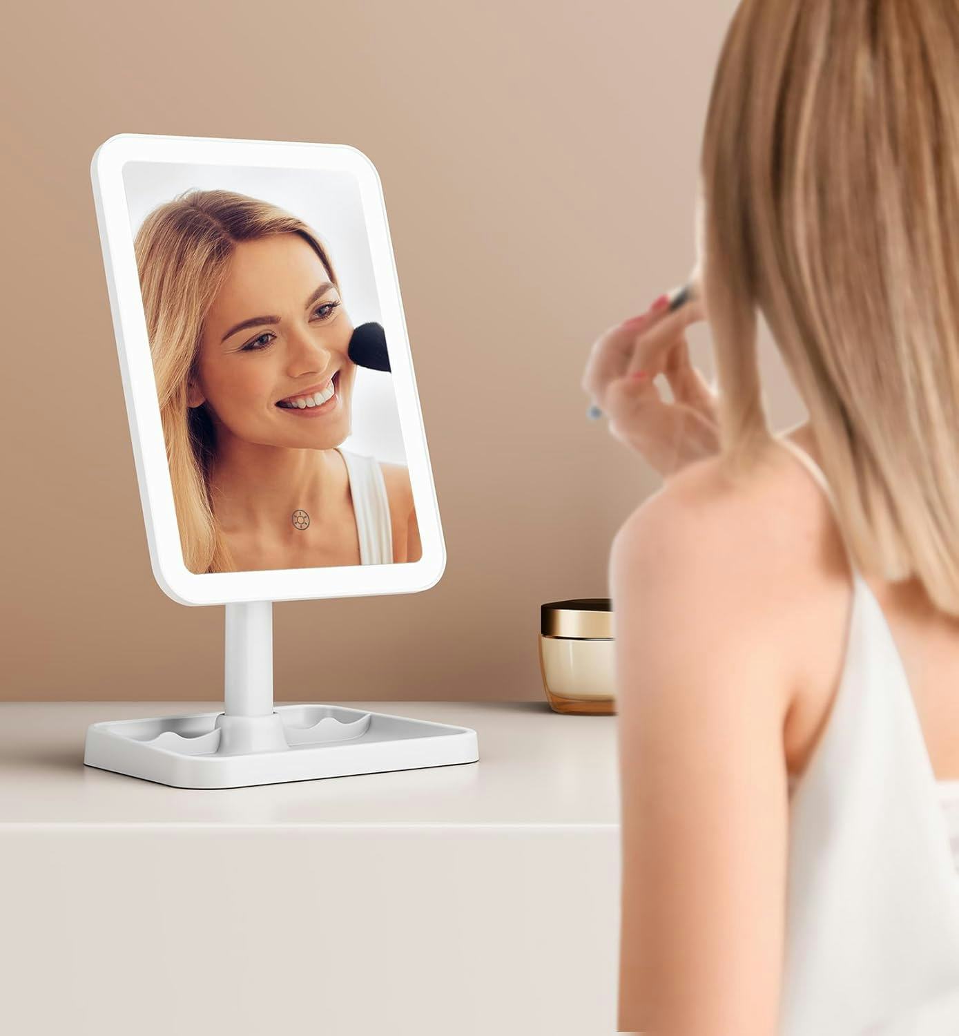 Это популярное зеркало для макияжа отлично подходит для использования в ванных комнатах или на туалетных столиках. Вы можете настроить освещение с помощью трех различных цветовых температур и регулируемой яркости. В комплекте также есть зеркало на присоске для работы вблизи. Беспроводное исполнение и возможность подзарядки делают его удобным, а компактный размер идеально подходит для путешествий.
