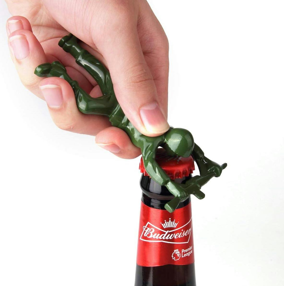 Открывалка для бутылок, удобная для захвата, в форме маленького зеленого солдатика.
