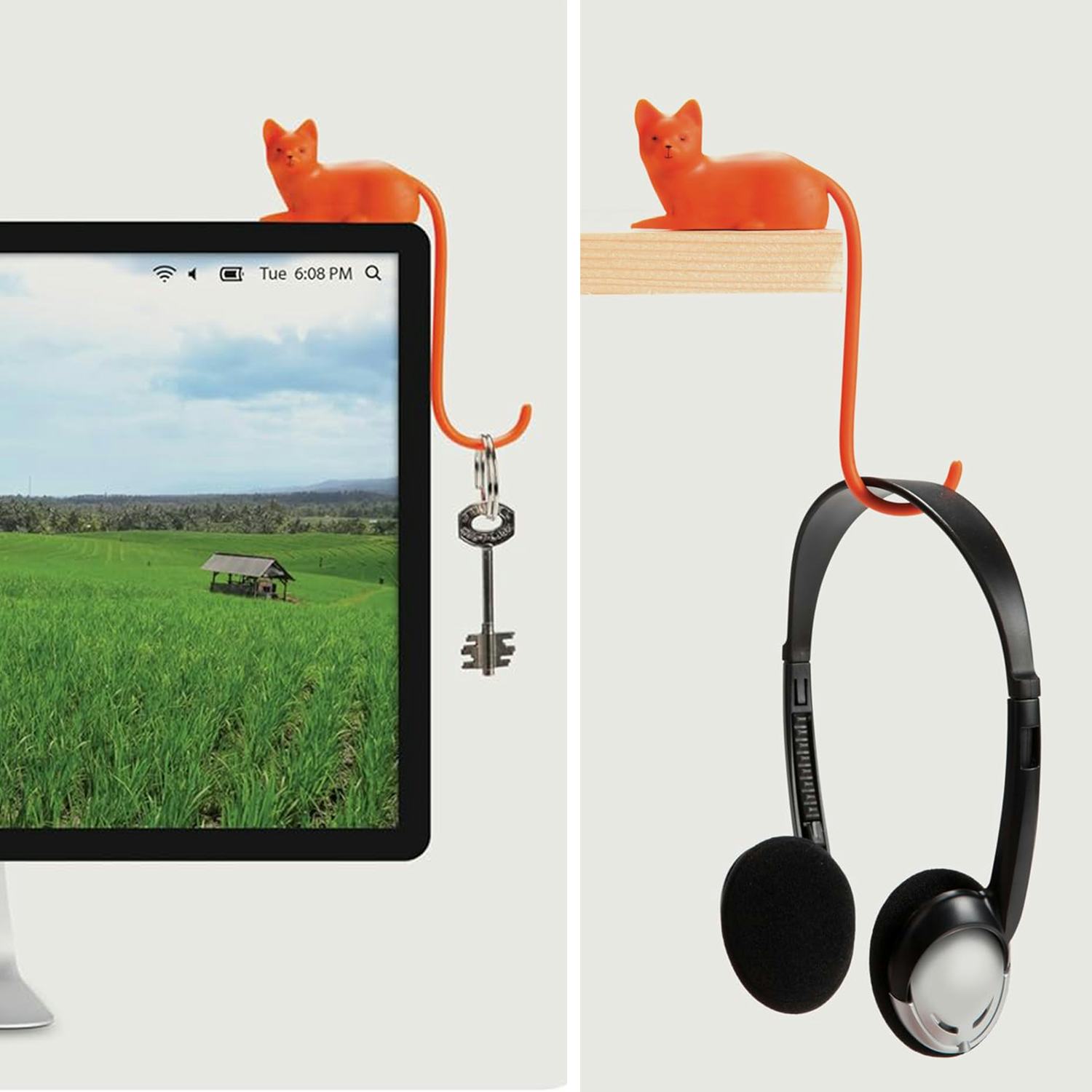 Этот милый кошачий крючок легко крепится к верхней части вашего компьютерного монитора или стола, предоставляя удобное место для подвешивания вещей. Его длинный ‘хвост’ может выдержать до 1 фунта, что делает его идеальным для ключей, наушников, контроллеров и других небольших предметов. Он использует прочный, долговечный клей 3M, чтобы надежно держаться на месте.