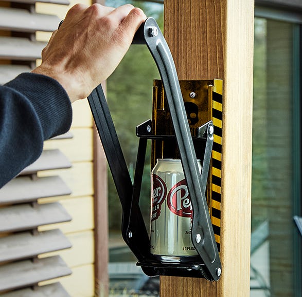 Настенный измельчитель банок, чтобы сэкономить место в вашем контейнере для переработки.