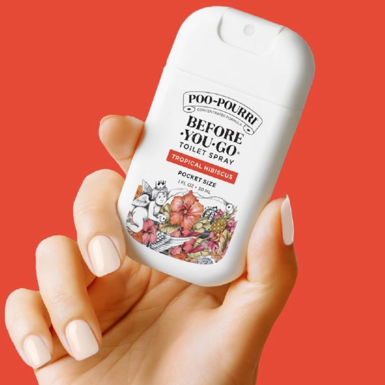 Портативный спрей для туалета Poo-Pourri поставляется в удобном флаконе объемом 28 мл, идеально подходящем для путешествий. Вместо искусственных ароматизаторов он изготовлен из натуральных эфирных масел гибискуса, абрикоса и цитрусовых, что придает ему свежий, цветочно-фруктовый аромат. Быстрое распыление создает легкий слой на поверхности воды, и каждого флакона хватает примерно на 50 использований.