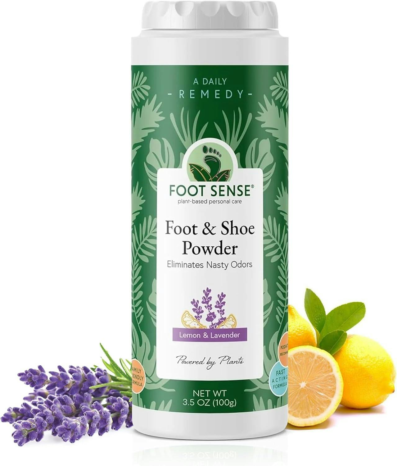 Порошок для ног и обуви с полностью натуральными ингредиентами и длительным контролем запаха.