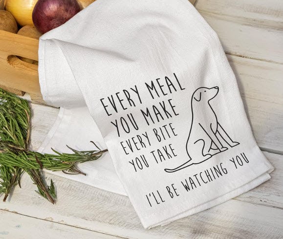 Владельцы собак оценят это забавное и реалистичное кухонное полотенце! На нем изображена игривая фраза: ‘Every meal you make, every bite you take, I’ll be watching you.’ Изготовлено из легко моющегося хлопка, его размеры 18×24 дюйма. Дизайн напечатан прочными, устойчивыми к выцветанию чернилами, и в комплекте есть удобная петля для подвешивания.