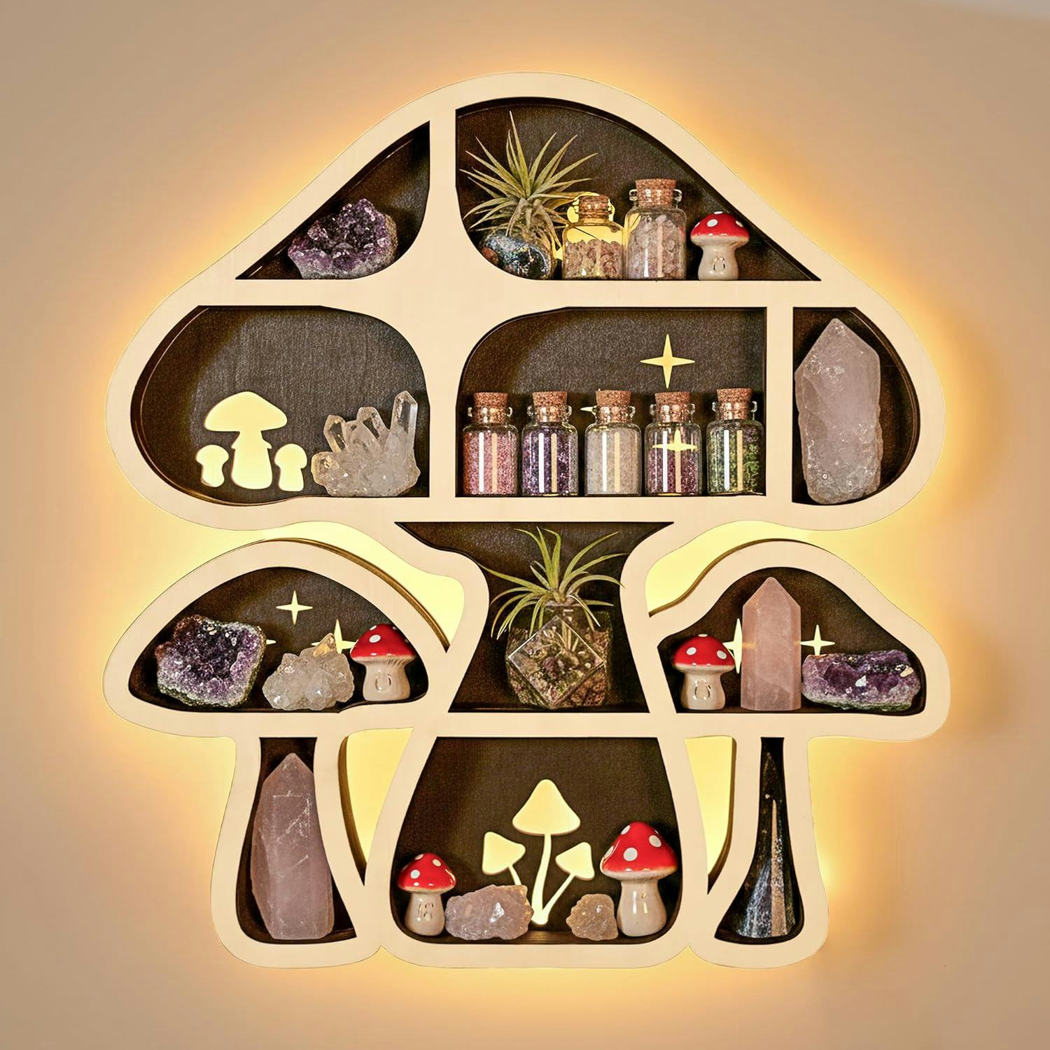 Этот уникальный стеллаж имеет форму трёх грибов, что придаёт ему игривый и очаровательный вид. Он также оснащён встроенными светодиодными лампами, чтобы действительно выделиться. Кроме того, в комплекте есть всё необходимое для монтажа, и покупатели говорят, что его легко установить.