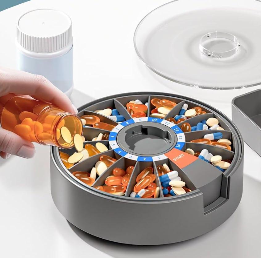 Этот диспенсер для таблеток делает прием ежедневных витаминов и лекарств простым. Он имеет 14 отделений, чего достаточно на две недели, и выдает таблетки на каждый день при нажатии кнопки.