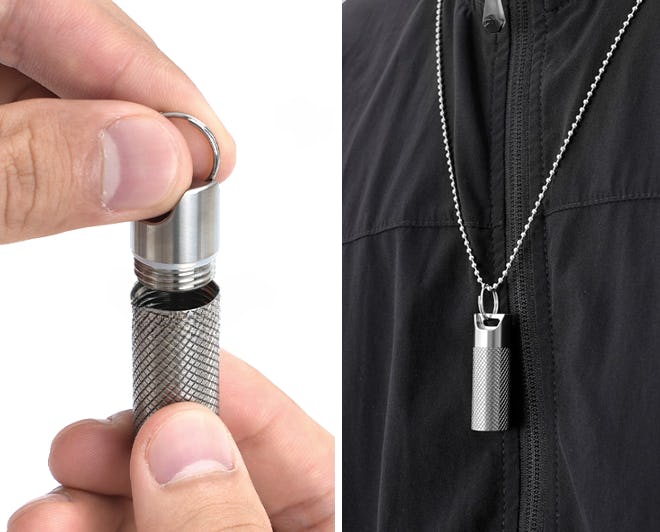 Этот водонепроницаемый титановый футляр для таблеток позволяет держать необходимые лекарства всегда под рукой – даже на шее – так что они будут у вас в любой ситуации, даже если ваша сумка потеряется. Один из покупателей, который принимает сердечные препараты только время от времени, поделился: «Здорово иметь несколько доз под рукой, когда они мне действительно нужны.» Вы также можете прикрепить его к ключам или сумке для лекарств, которые вам не нужны немедленно.