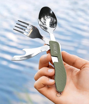 Если вам нравятся походы, пикники или просто брать обед на работу, вам понравится этот удобный набор столовых приборов. Он разработан, чтобы у вас всегда были с собой вилка, нож, ложка и открывалка для бутылок. Каждый инструмент складывается из ручки, обеспечивая полноразмерный столовый прибор, когда он вам нужен. Он также включает в себя чехол для переноски и доступен в 13 различных цветах.