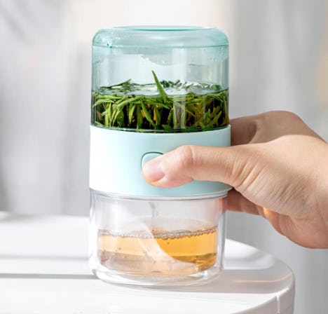 Этот чайник делает заваривание рассыпного чая в дороге простым и без беспорядка. Просто добавьте чайные листья и горячую воду в верхнюю часть, дайте настояться, затем поместите его над нижней секцией и нажмите кнопку. Заваренный чай напрямую поступает в вашу чашку без капель или пролитий. Клиенты любят, насколько последовательно идеальным получается их чай, и насколько легко его чистить. Он также включает в себя чехол для удобной портативности.