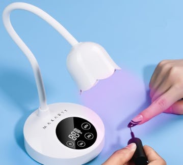 Этот небольшой УФ-фонарь делает выполнение гелевого маникюра дома простым и увлекательным. Его милый дизайн в виде цветка лотоса отлично смотрится на вашем туалетном столике, а гибкий регулируемый держатель позволяет направлять свет именно туда, где он вам нужен. Он имеет регулируемые таймеры для разных типов геля, насадок или клея, и поскольку он перезаряжаемый, вы можете использовать его где угодно!