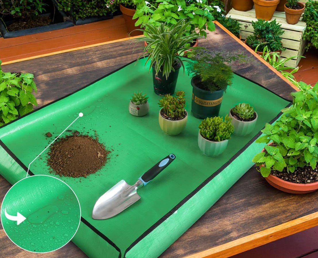 Этот большой водонепроницаемый коврик для ухода за растениями без беспорядка